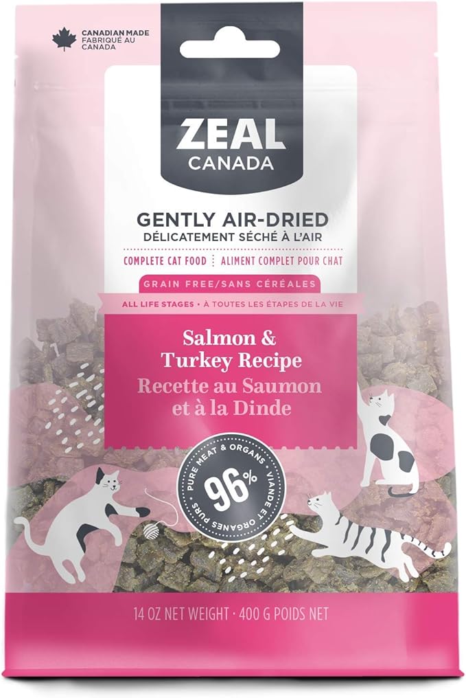 Expiring On- 29/05-  Zeal Canada Gently Air-Dried Salmon and Turkey for Cats 14oz/400g