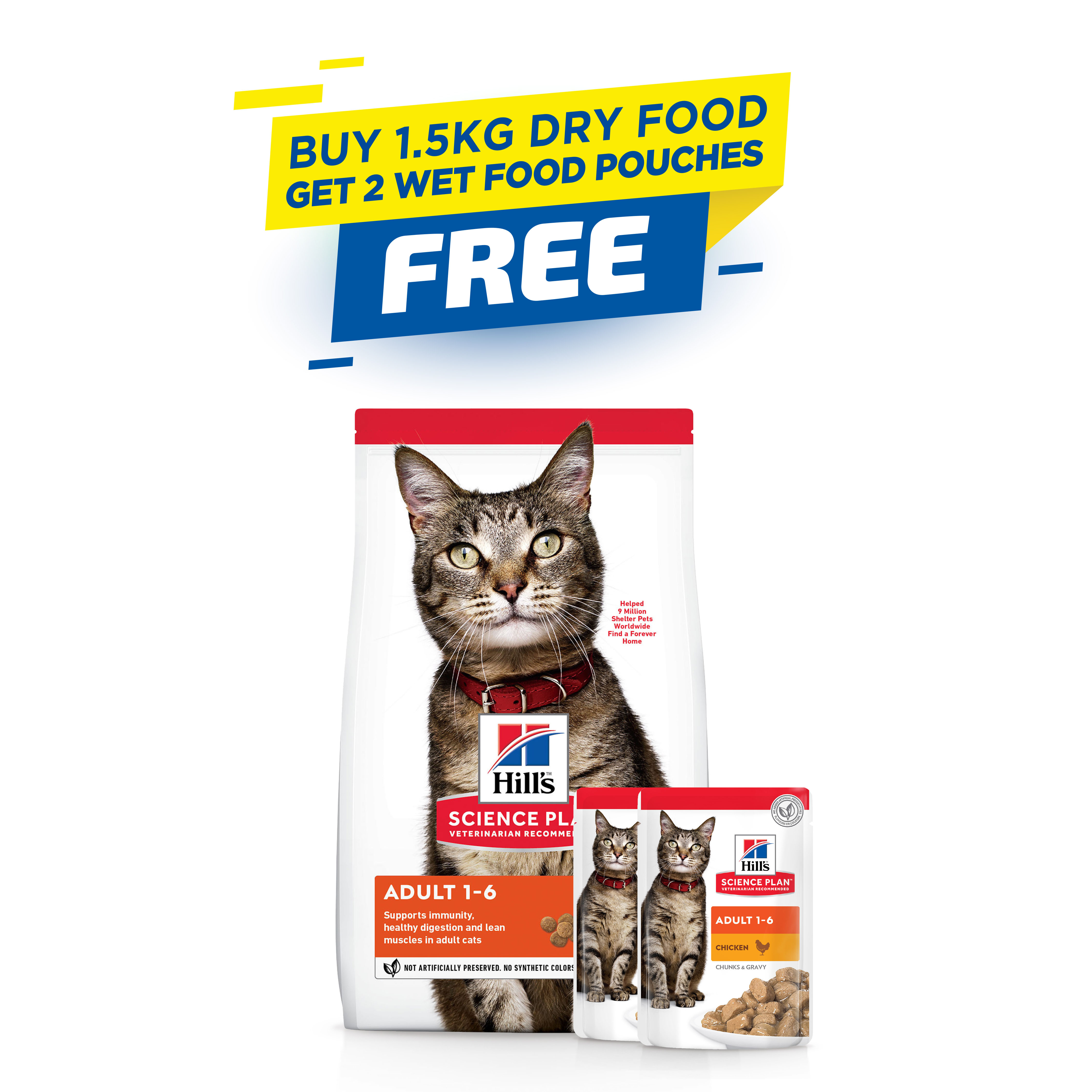 Expiring On-  22/02/2026- Hills Science Plan Adult Cat Food with Chicken - 1.5kg