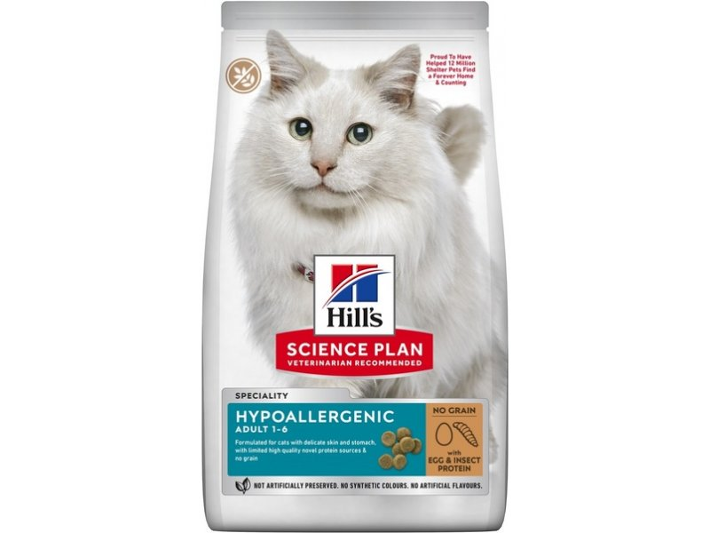 Expiring On-  28/02/2026- Hills Science Plan Hypoallergenic Adult Cat Food No Grain Egg & Insect Protein 1.5kg