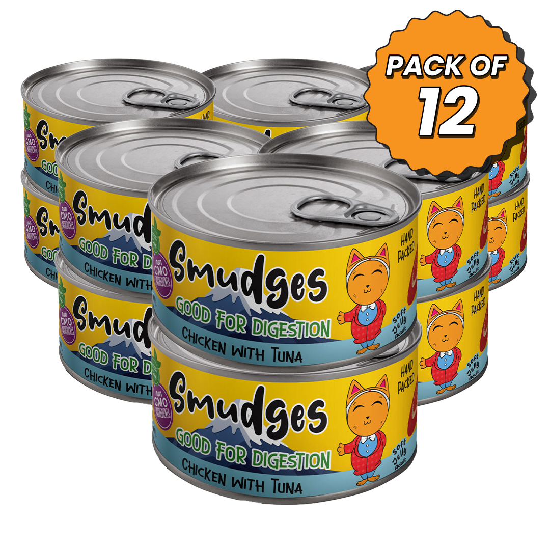Smudges Adult Cat Tuna Flakes With Mackerel in Soft Jelly 80g Pack of 12