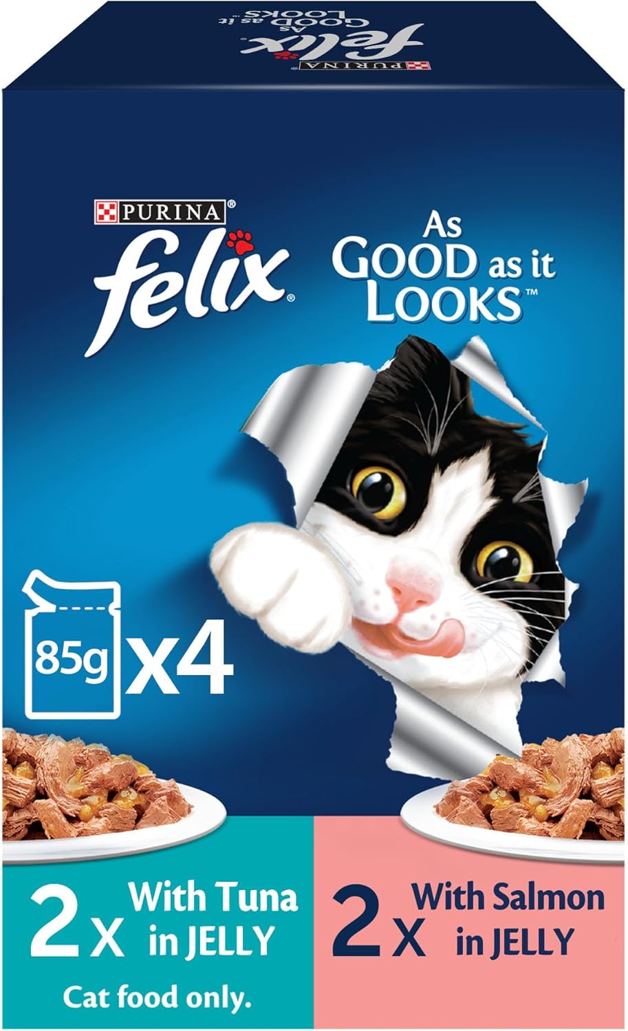 Expiring On-  28/02/2026- Purina Felix Adult Tuna + Adult Salmon 4x85g