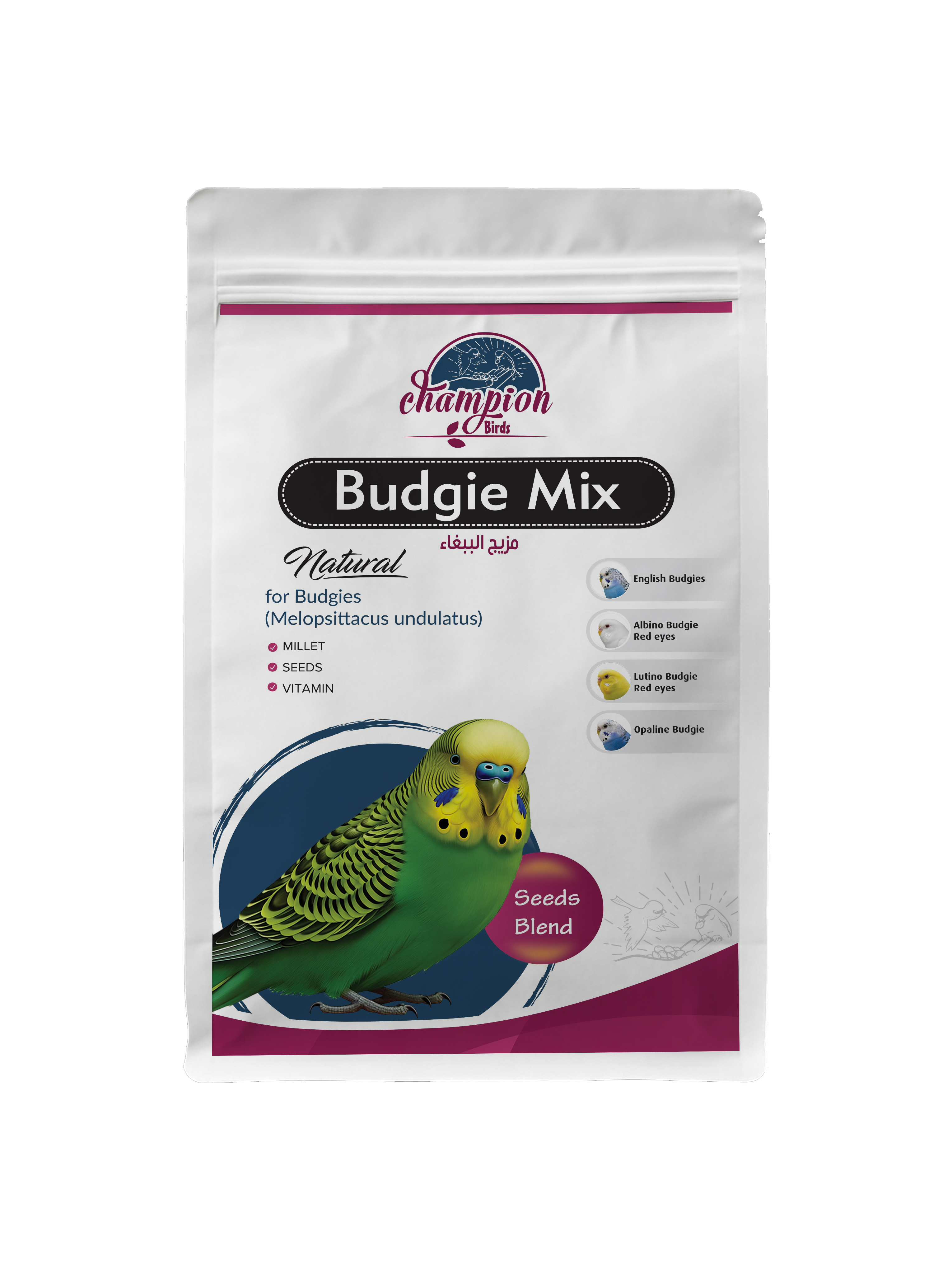 Champion Birds - Premium Mix for Budgies, 1000 Grams / 2.2 lb x 6 Pieces/Carton