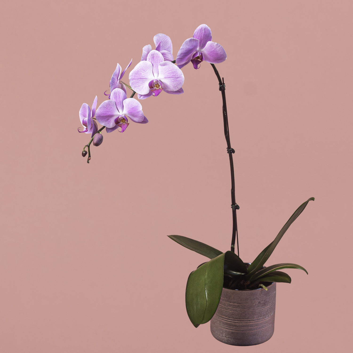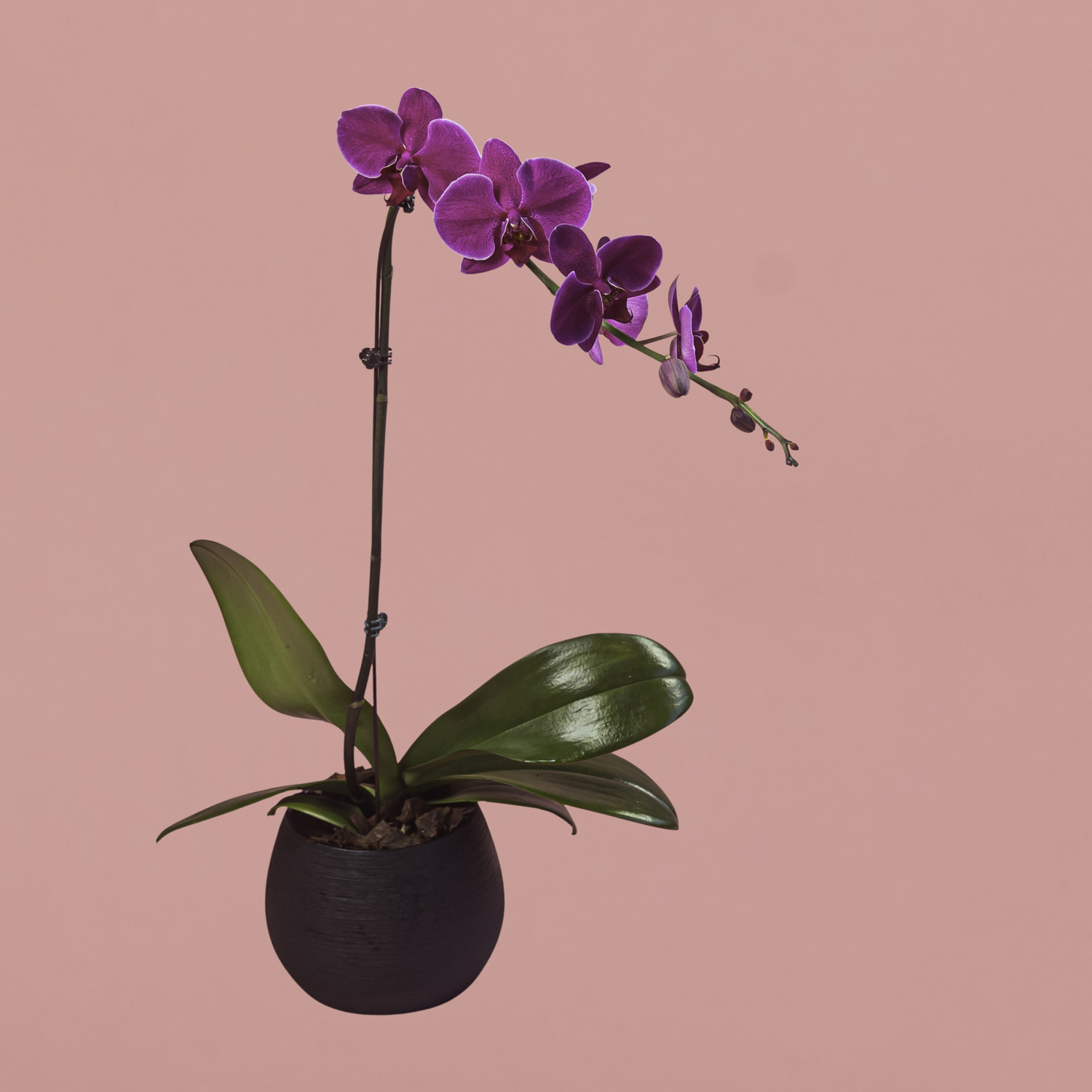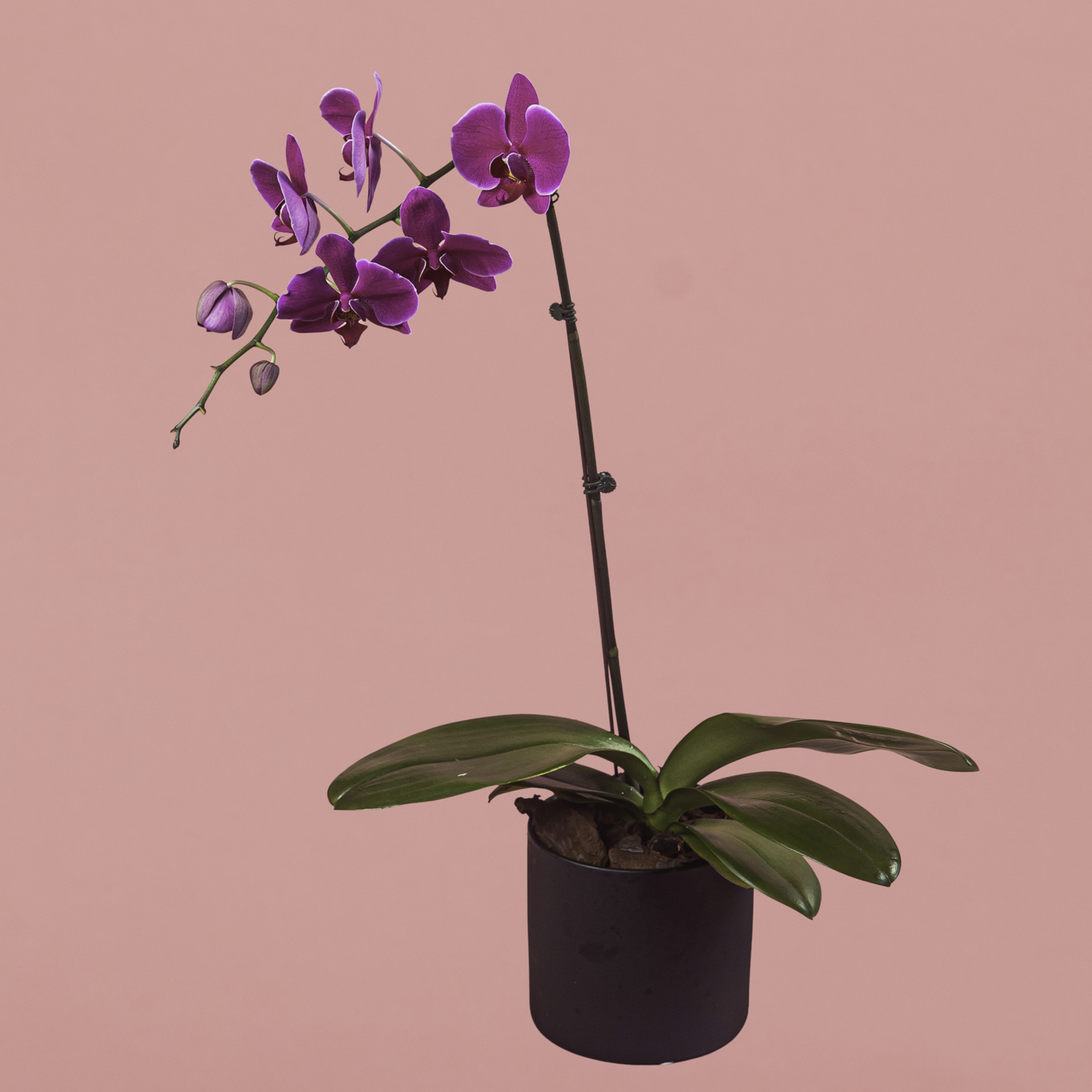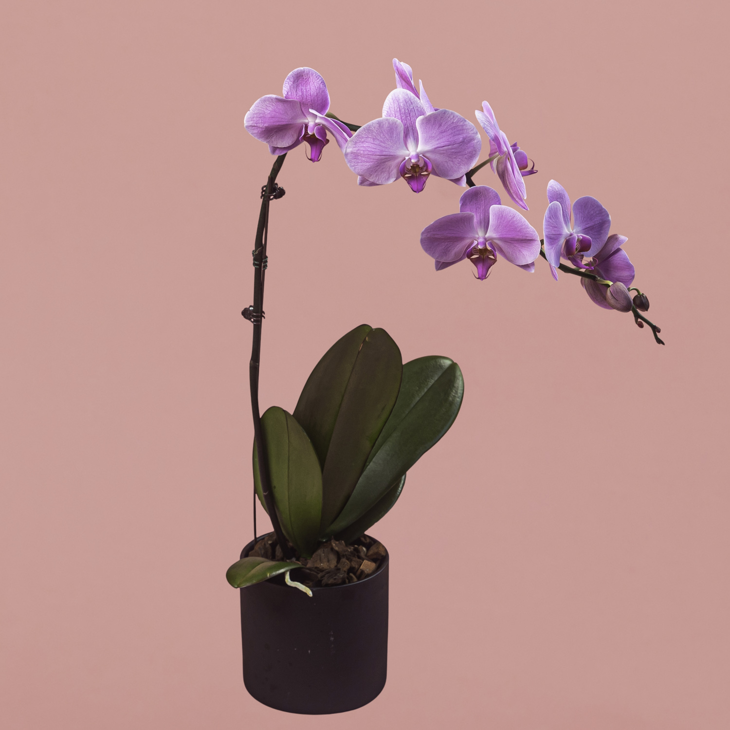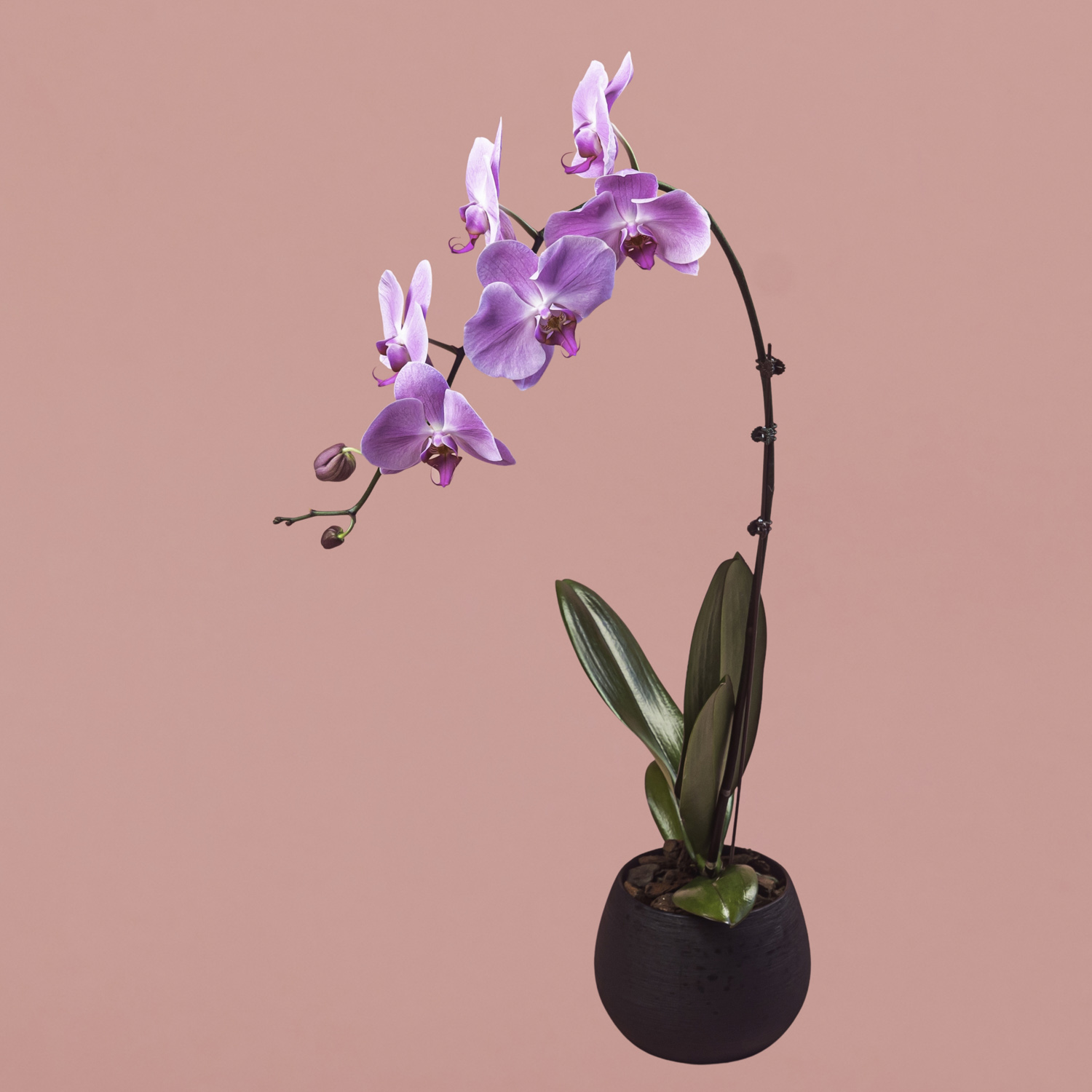 Purple Phalaenopsis in Black Pot