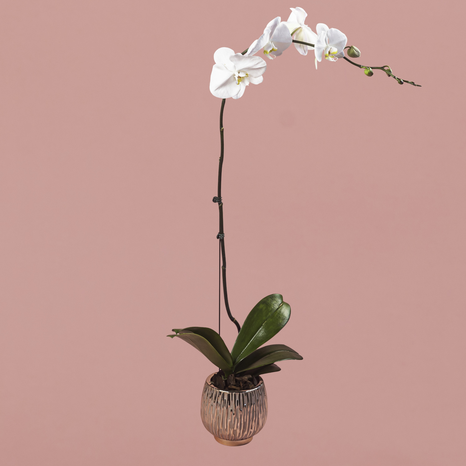 White Phalaenopsis in Rose Gold Pot