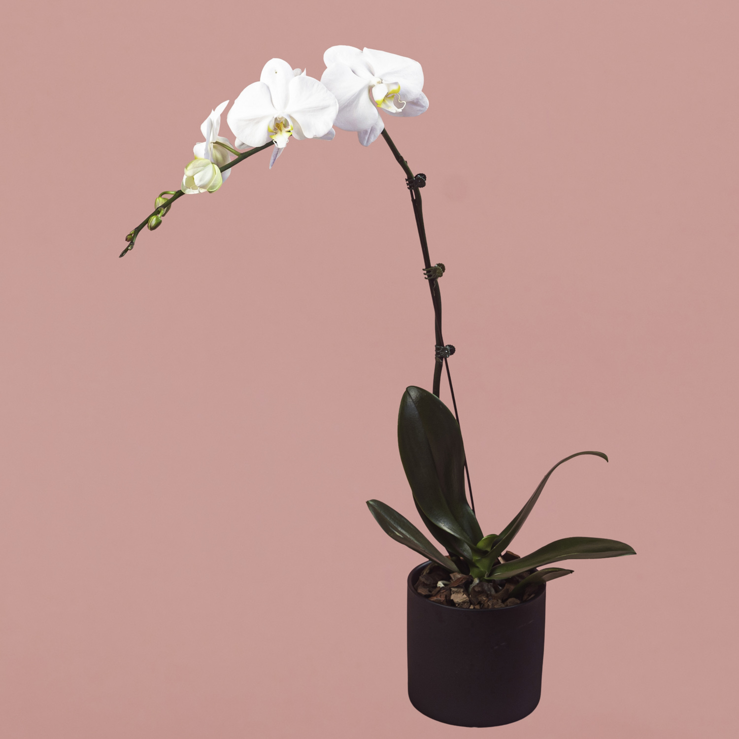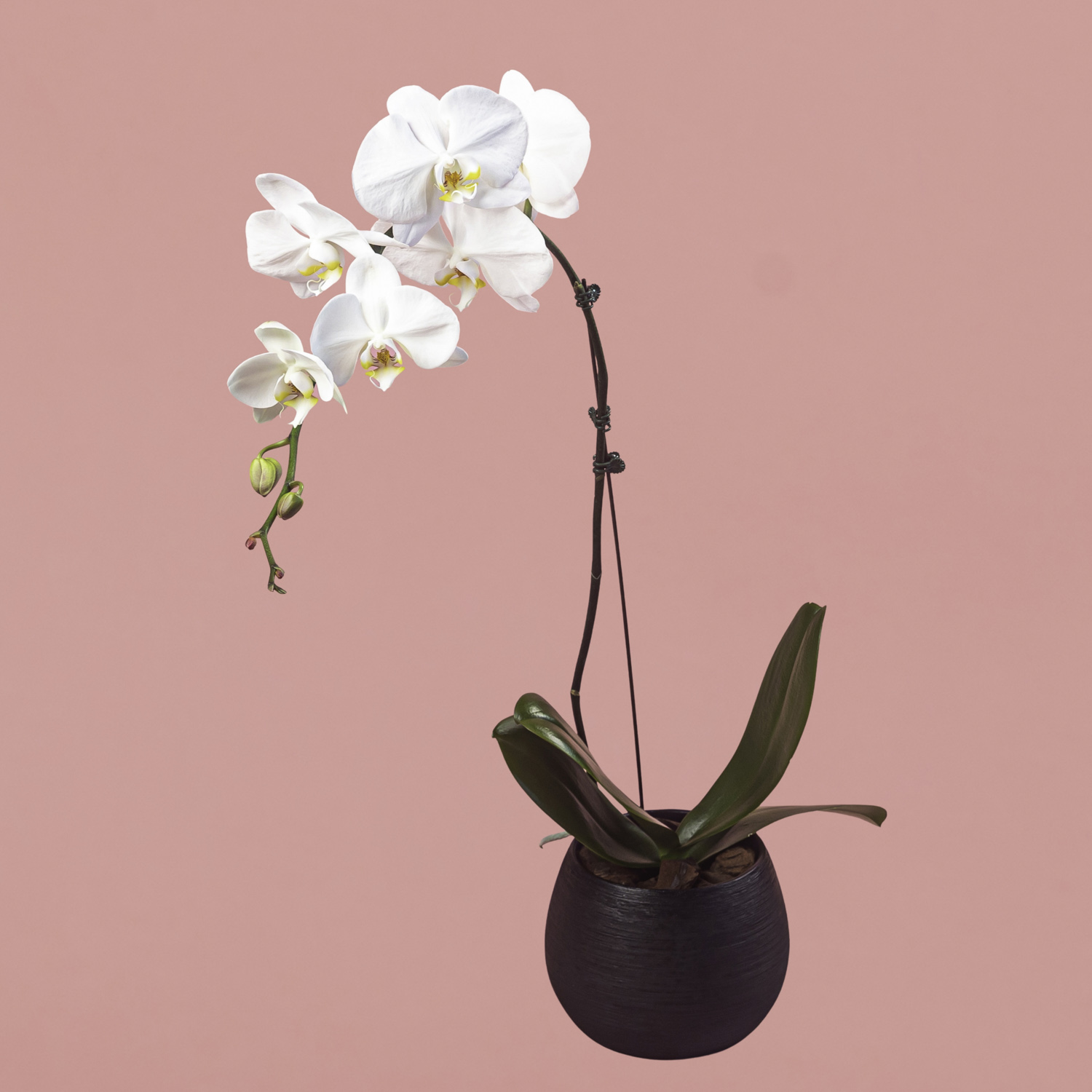 White Phalaenopsis in Black Pot