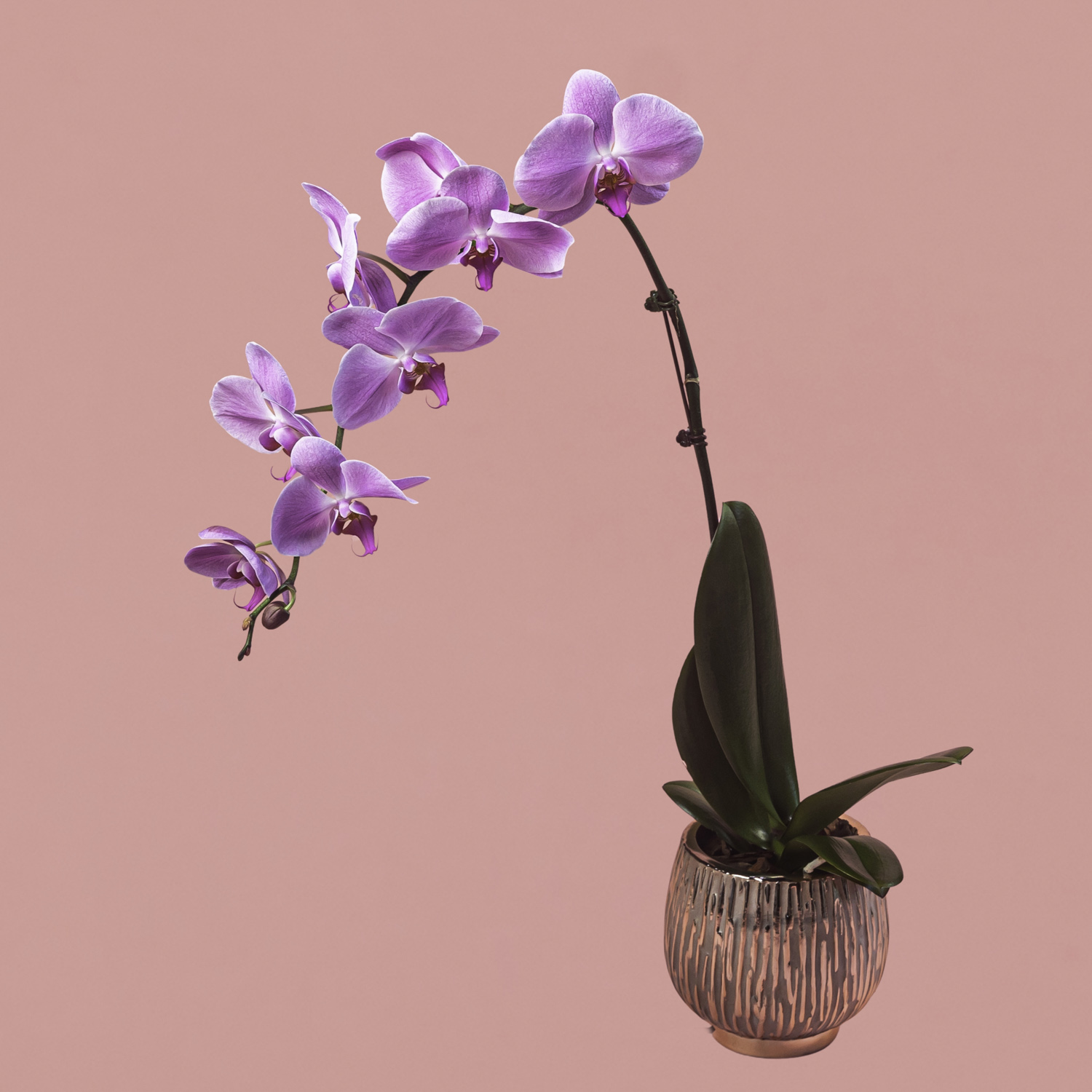 Purple Phalaenopsis in Rose Gold Pot