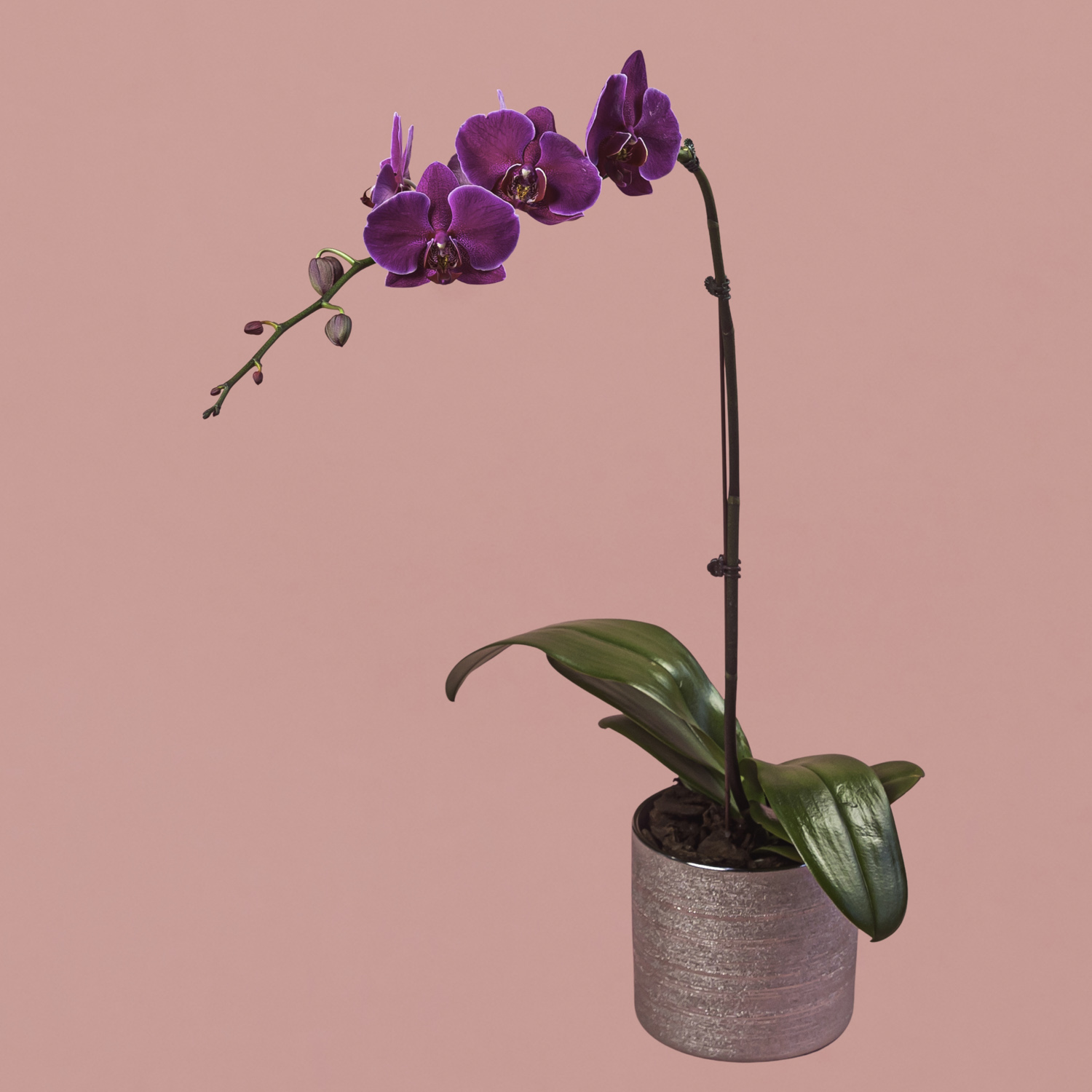 Purple Phalaenopsis in Silver Pot