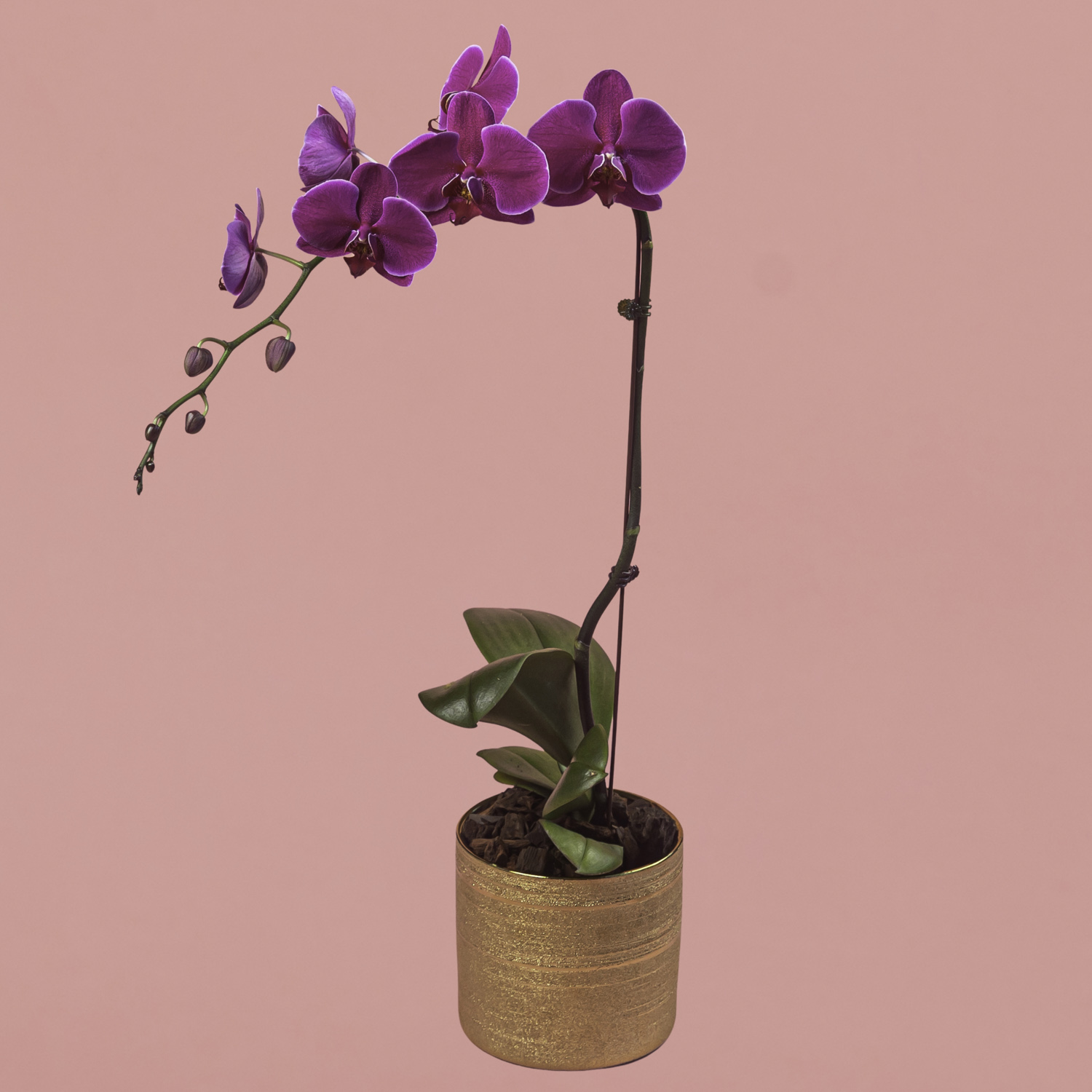 Purple Phalaenopsis in Gold Pot