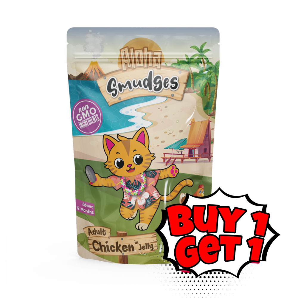 Buy one Get one Aloha Smudges Chicken Adult Cat wet food in Jelly 85g Pouch
