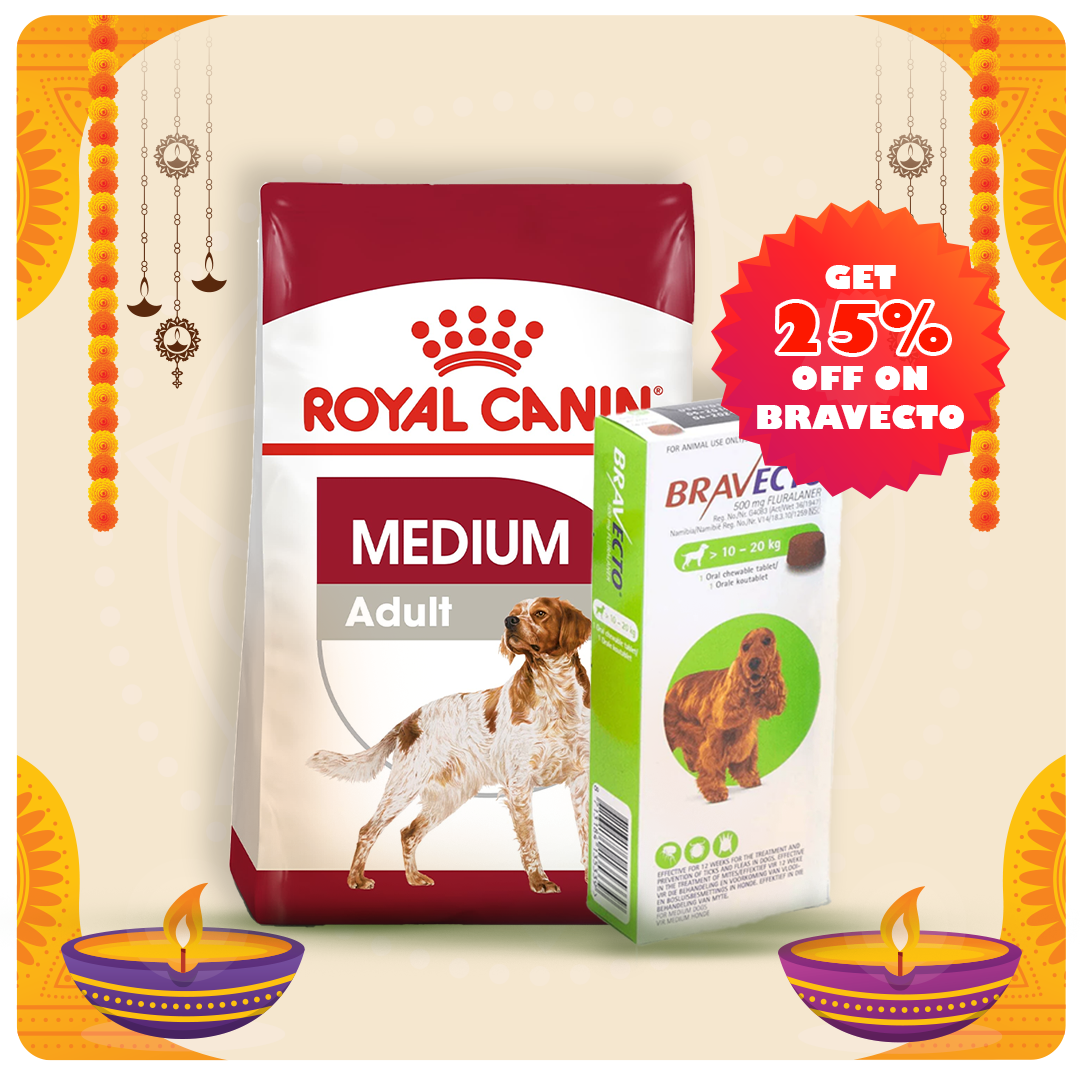 Royal Canine Size Health Nutrition Medium Adult 10 KG + Bravecto for Dogs 10 - 20 kg Tablet 500mg